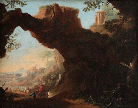 Attr. Salvator Rosa Napoli 1615 - Roma 1673 Paesaggio con personaggi Olio su...