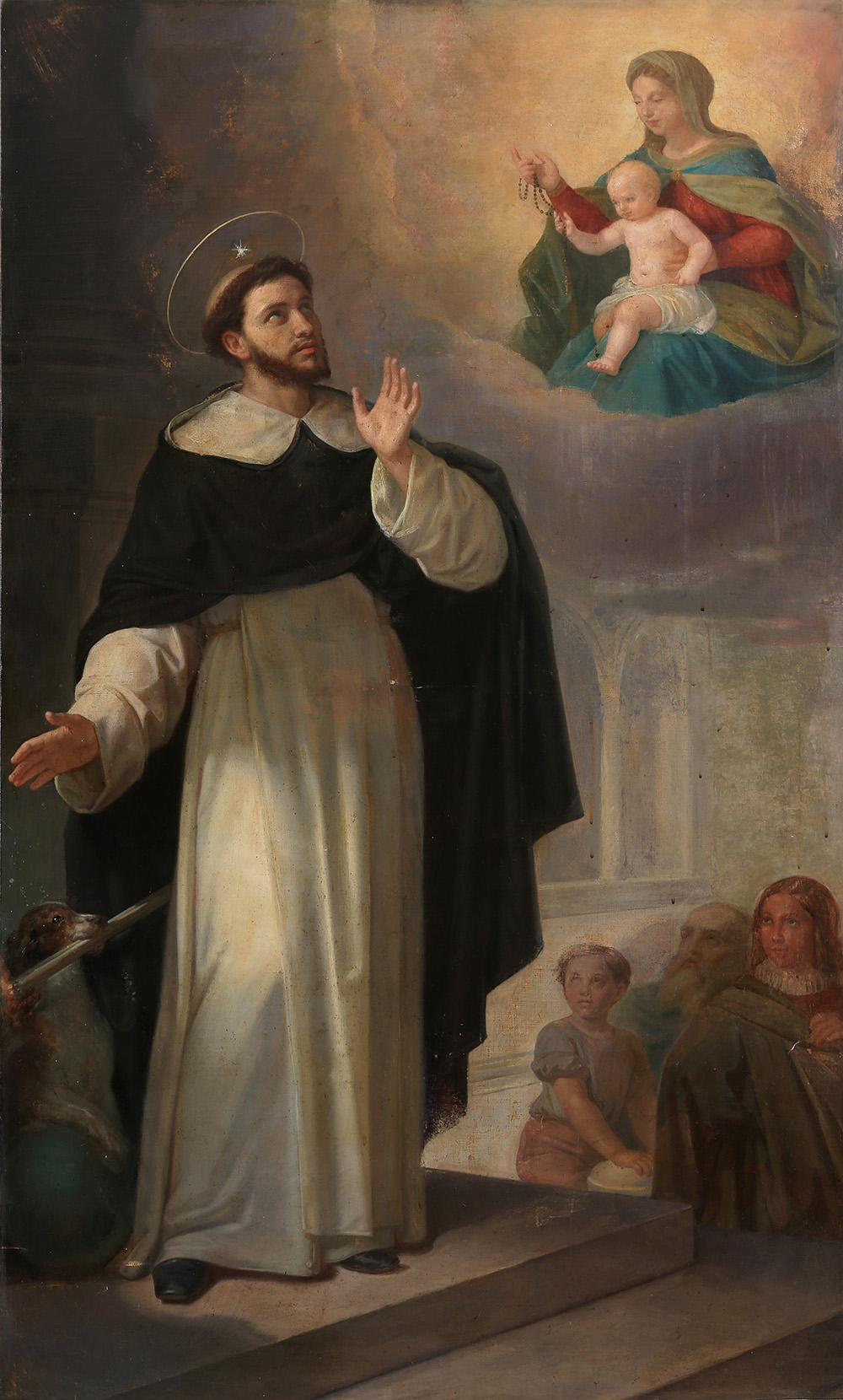 Dipinto sec XIX Apparizione della madonna al santo Olio su tela cm 150x89