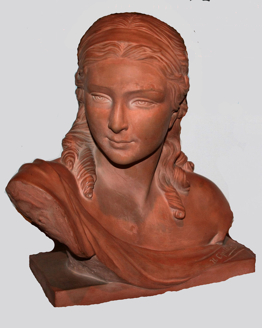 Ugo Cipriani (1887-1960) “Testa di bambina” Scultura in terracotta sec XX cm 35 (firmata)