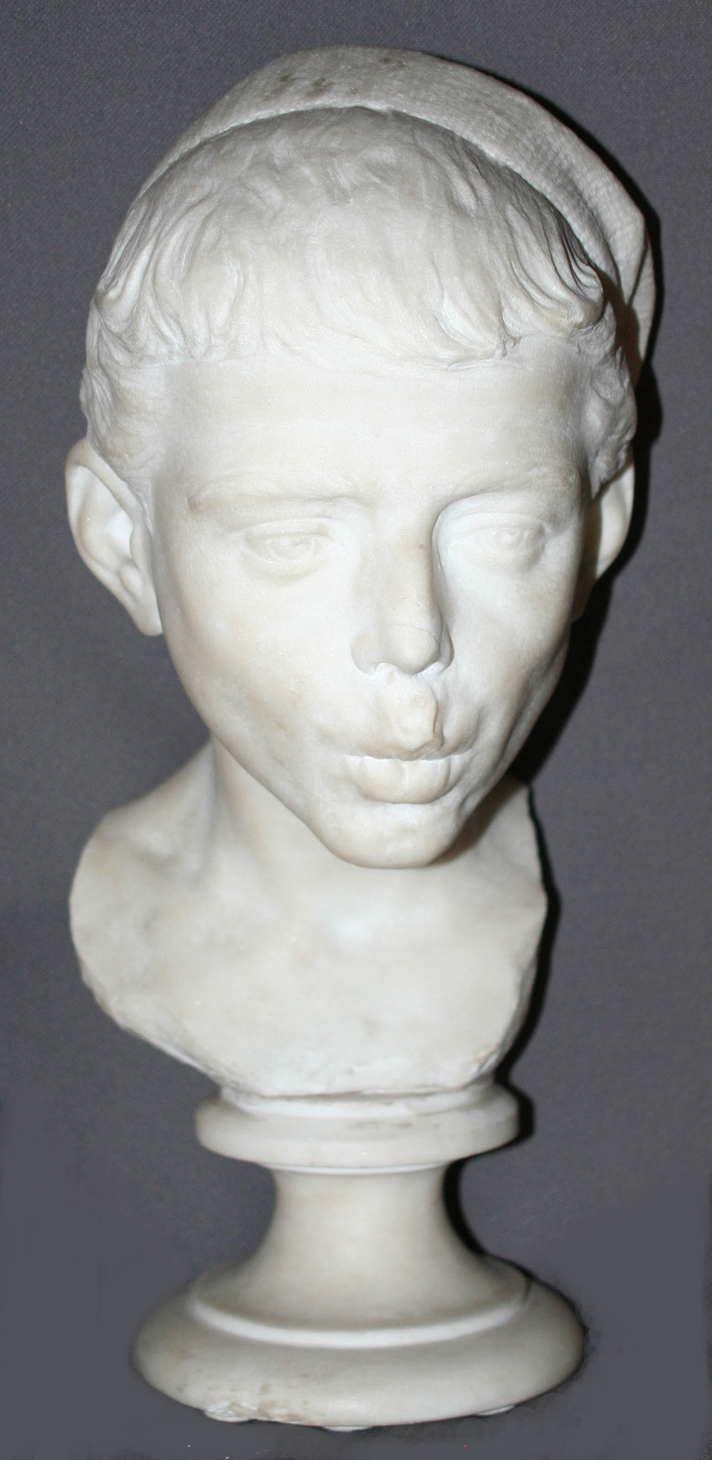 Francesco Flora (Francavilla Fontana - Brindisi 1857 - ? ) Giovane che fischia Scultura in marmo cm 43 (firmata)