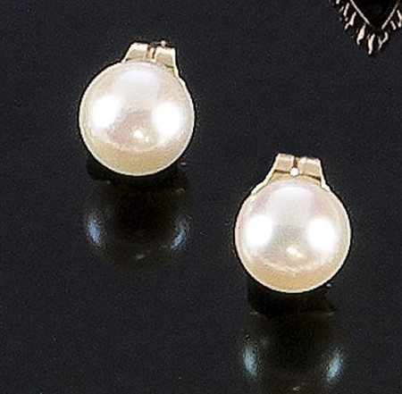 COPPIA DI ORECCHINI Coppia di orecchini in oro giallo con due perle giapponesi dal diam. di mm 9,2 Peso gr 3,5