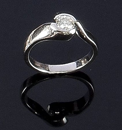 ANELLO Anello in oro bianco con diamante solitario di ct 0,50 inserito entro anse ondulate Peso gr. 5,8 Misura 16