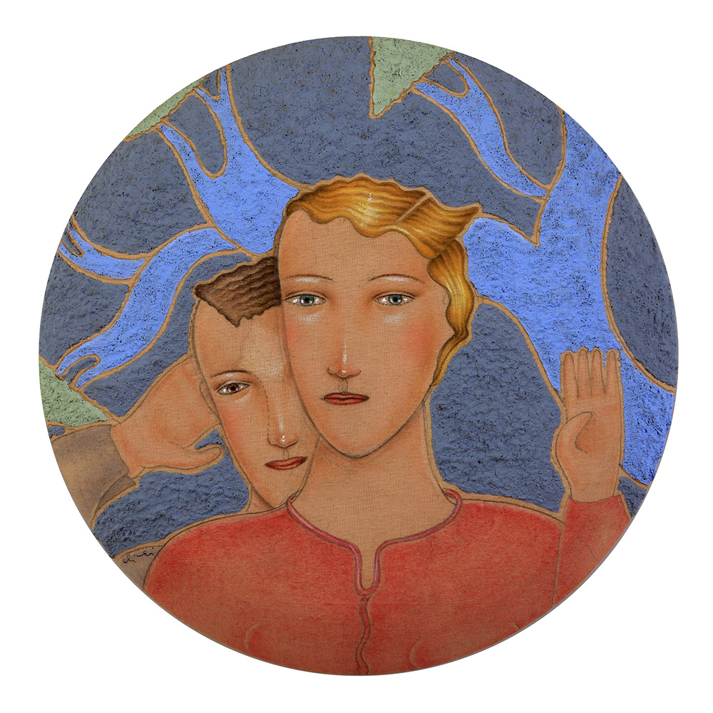 LUCA ALINARI Firenze 1943 " Guardano ma non vedono " acrilico e resina su tela ø 40 firma in basso a sinistra; Autentica dell' Autore su foto Opera pubblicata sul Catalogo della Monografia Luca Alinari