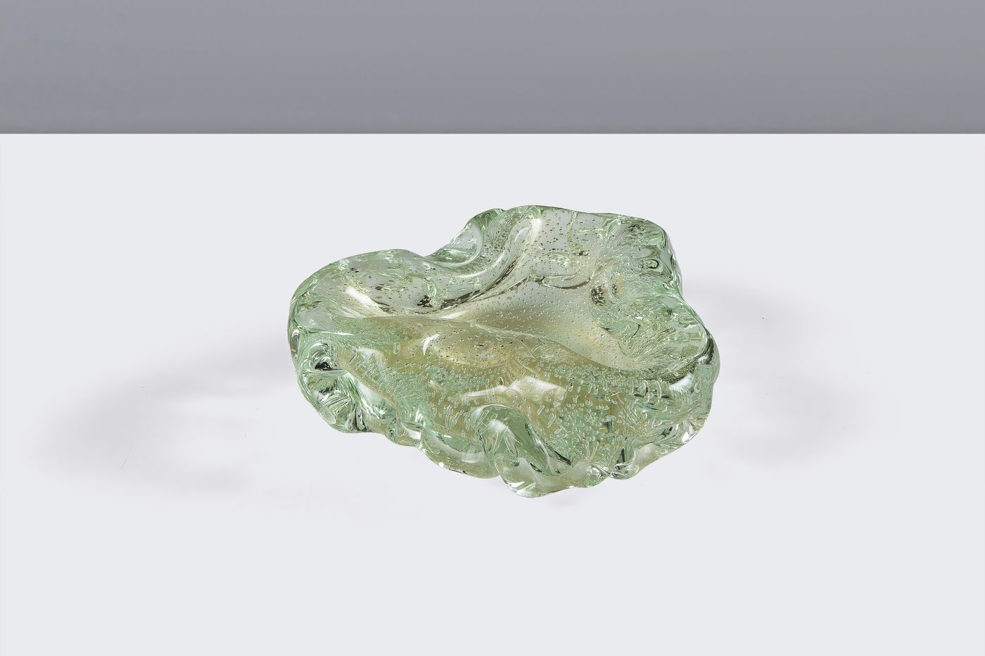 SEGUSO - Portacenere in vetro bulicante e oro. Opera firmata sotto la base. Fine anni '30. cm 6x17