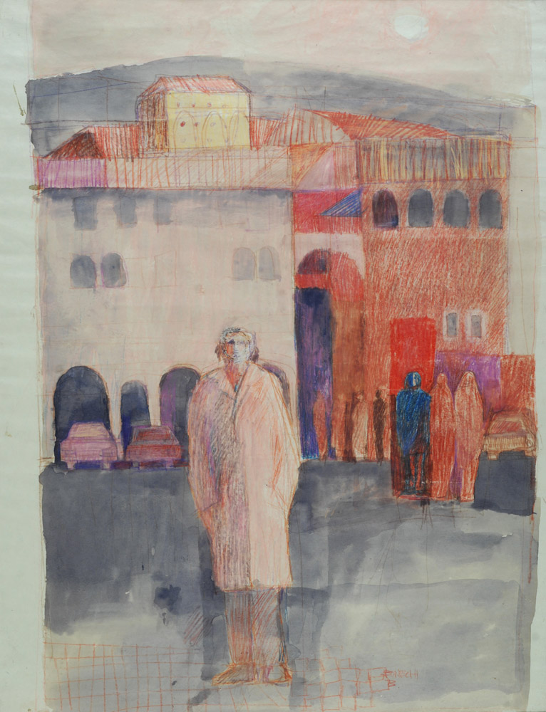 Lorenzo Bonechi, Figline V.no 1955 - 1994, Senza titolo, 1980, Matita e acquerello su carta, cm. 65x49, Firma e data in basso a destra.