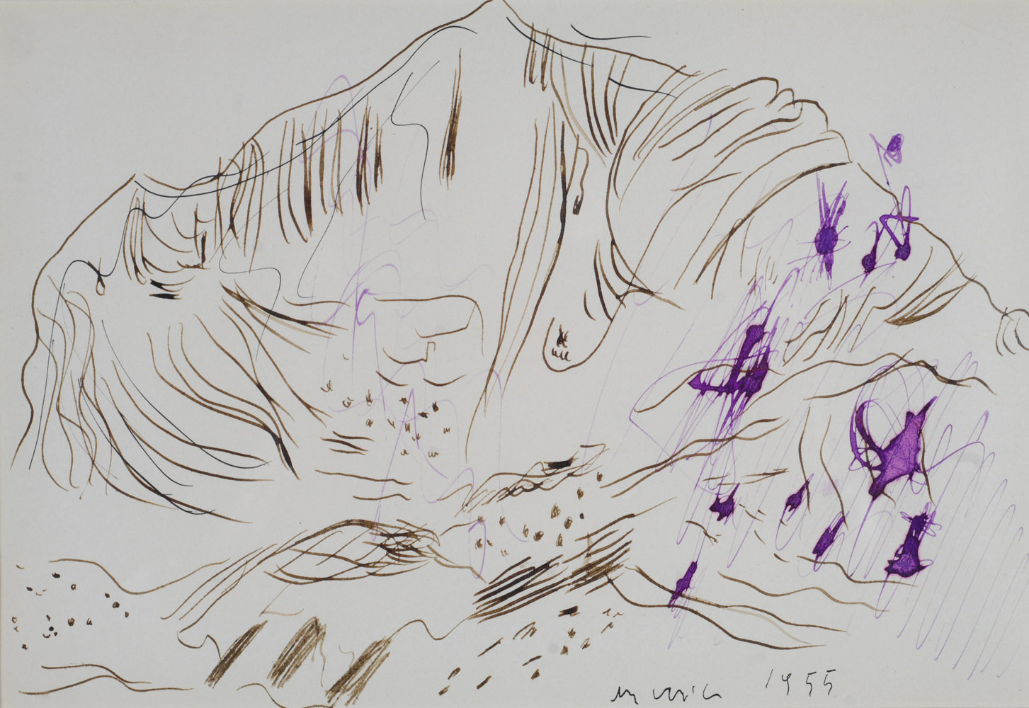 Zoran Music, Gorizia 1909 - 2005, Collina, 1955, Inchiostro su carta, cm. 19,5x28, Firma e data in basso a destra.