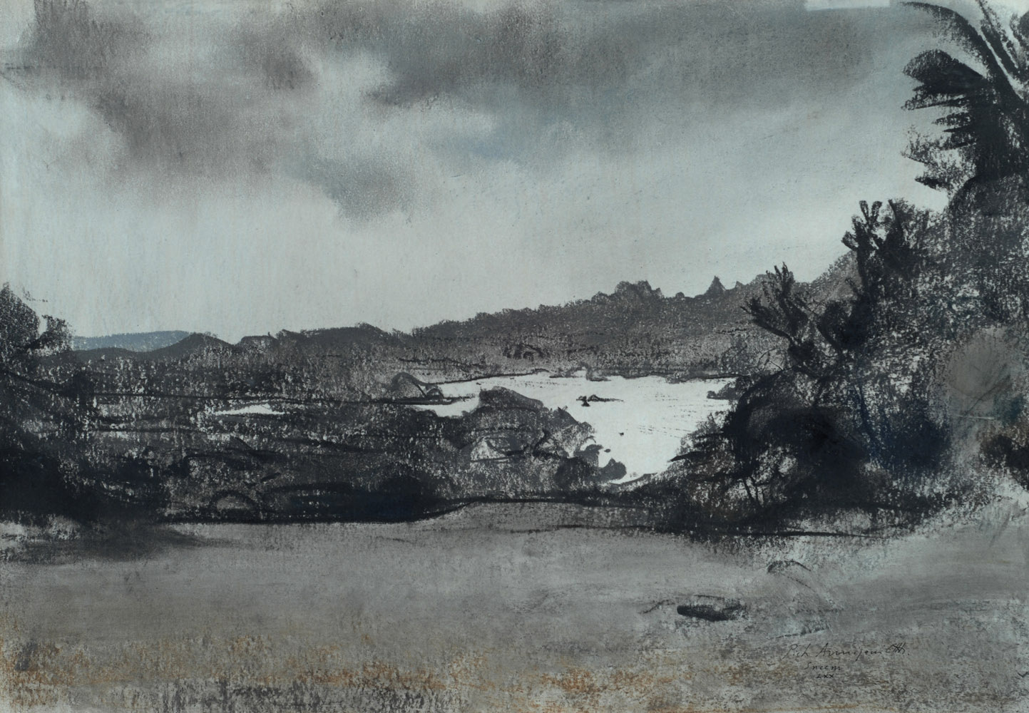 Pietro Annigoni, Milano 1910 - Firenze 1988, Sneem Irlanda, 1970, China e china acquerellata su cartone, cm. 39,5x57, Firma in basso a destra. Sul verso: firma e dedica; etichetta Galleria Levi, Milano.