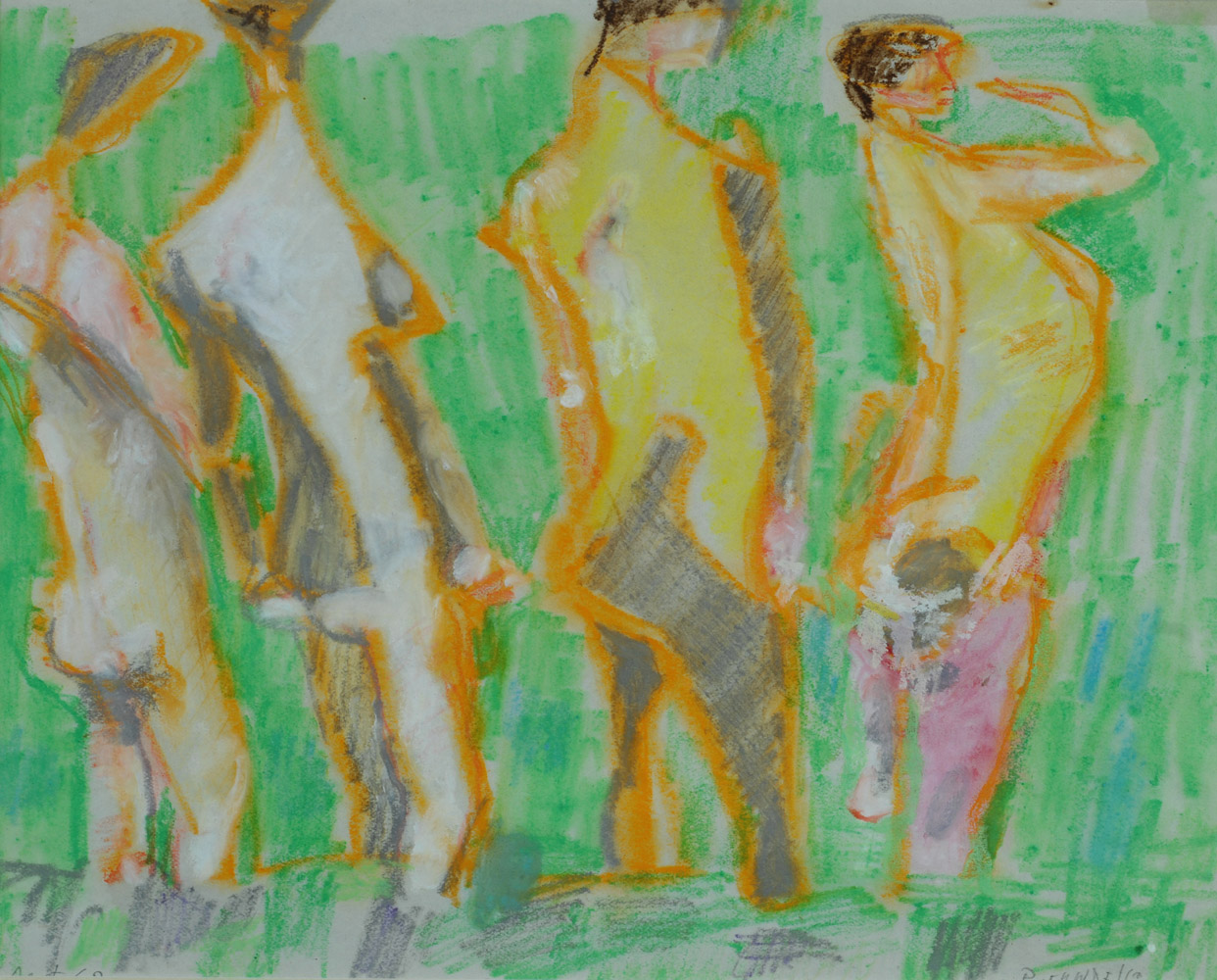Fausto Pirandello, Roma 1899 - 1975, Quattro bagnanti, 1962, Pastelli a cera...