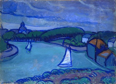 Gino Rossi, Venezia 1884 - Teviso 1947, Paesaggio, 1907, Olio su cartone riportato su compensato, cm. 24x33, Sul verso: "Marina/ Bretone/1907"; "Gino Rossi". Bibliografia: 1946, Gino Rossi, a cura di G. Marchiori, Edizioni dell'Annunciata, Milano, tav. X