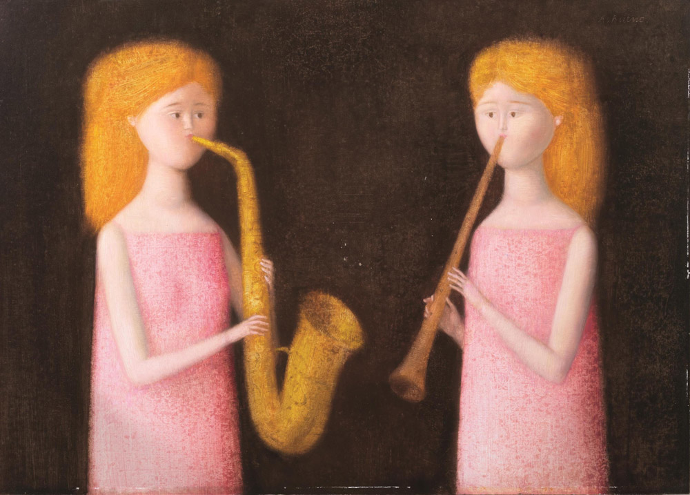 ANTONIO BUENO(Berlino 1918 - Fiesole 1984)Suonatriciolio su faesite, cm...