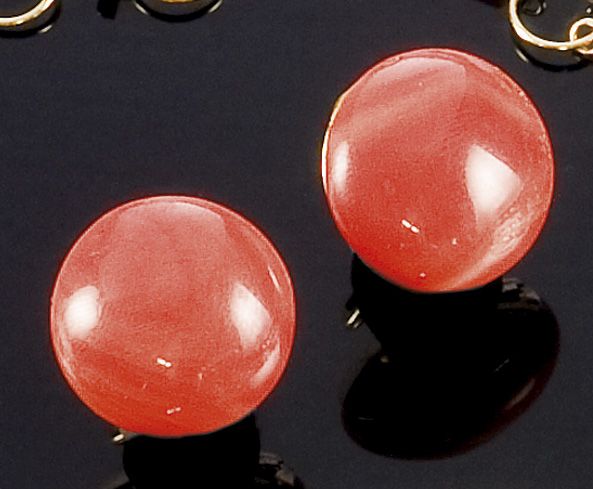COPPIA DI ORECCHINI Coppia di orecchini in oro giallo con due coralli giapponesi taglio cabochon Peso gr 17