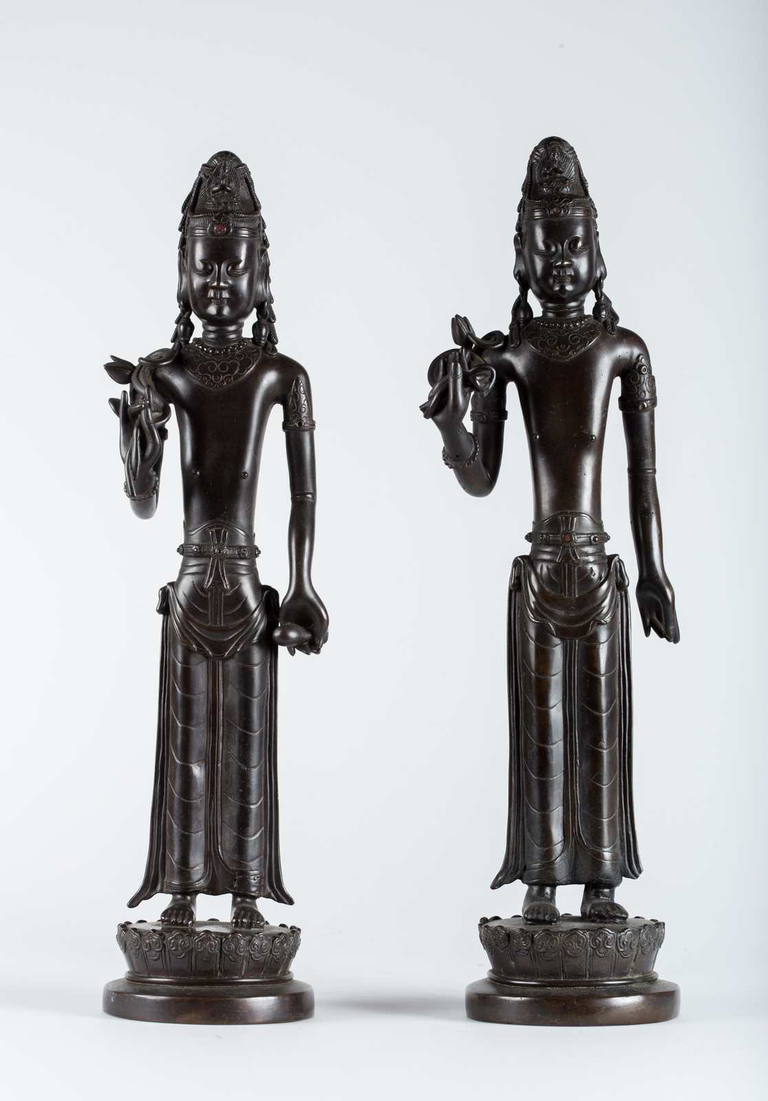 Arte Cinese A pair of bronze figures of Bodhisattvas in the Dali Kingdom style China, Qing dynasty . . Cm 53,50.