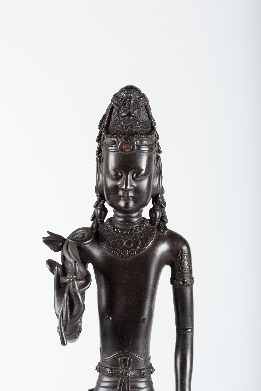 Arte Cinese Coppia di statue in bronzo raffiguranti due bodhisattva in stile del regno di Dali Cina, dinastia Qing. -. Cm 53,50. Caratterizzati dall'aspetto alto, snello e squadrato, tipico della statuaria del regno di Dali, i due bodhisattva sono abbelliti dalla gioielleria tipica e recano in mano gli attributi iconografici.