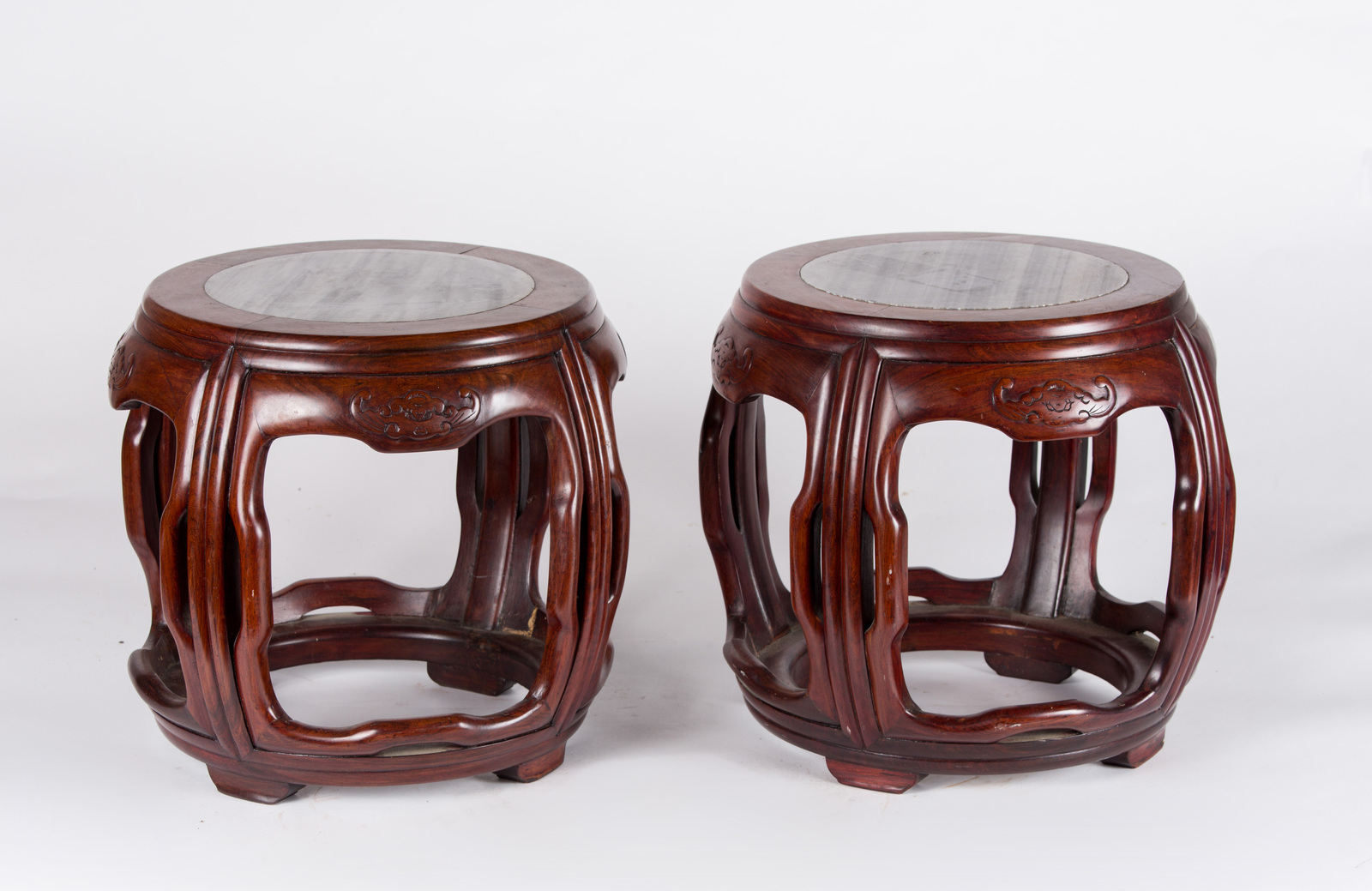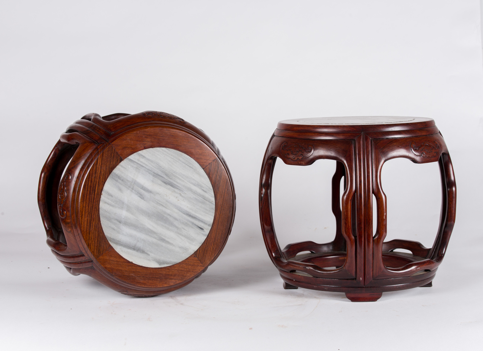 Arte Cinese Coppia di sgabelli in legno con seduta in marmo