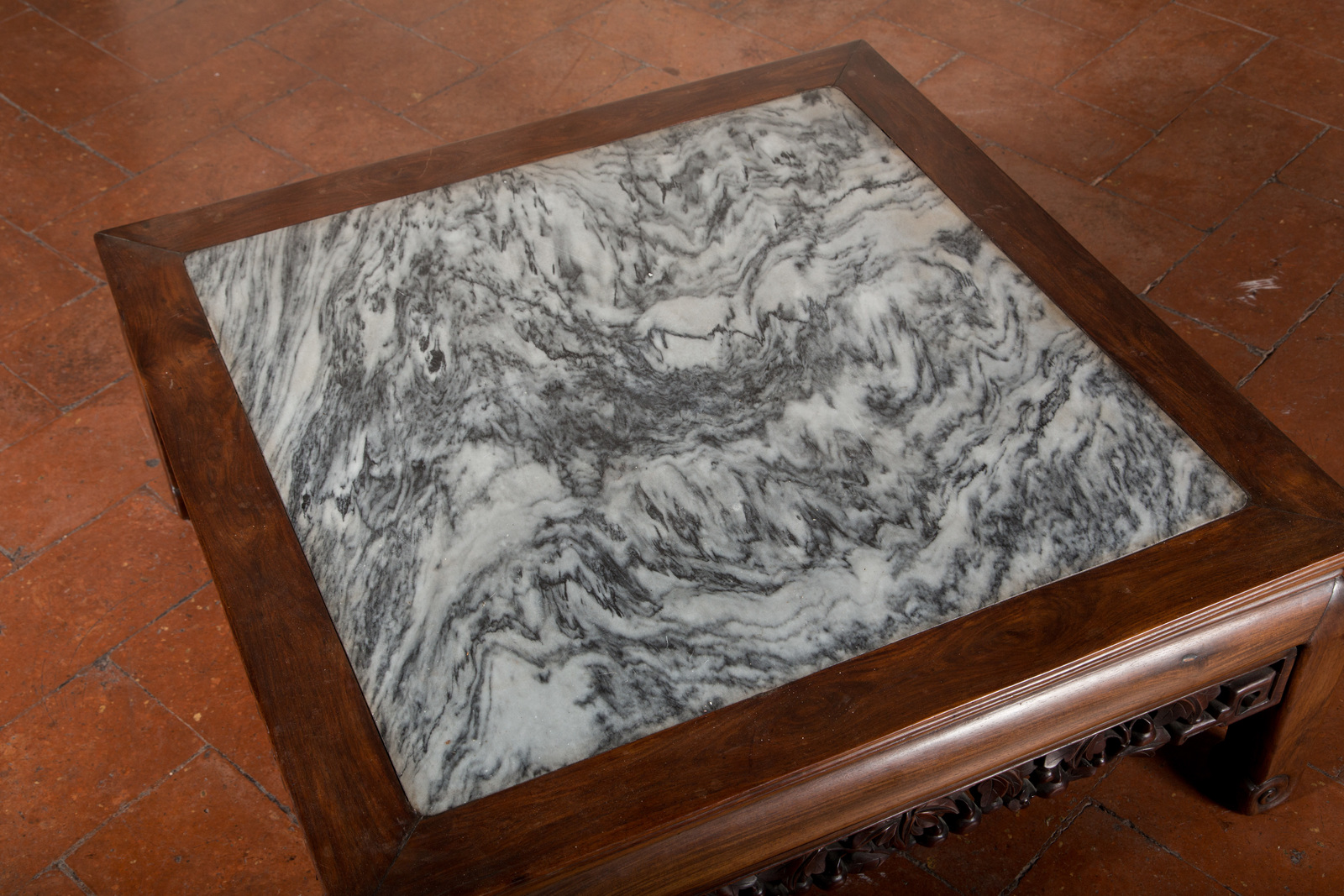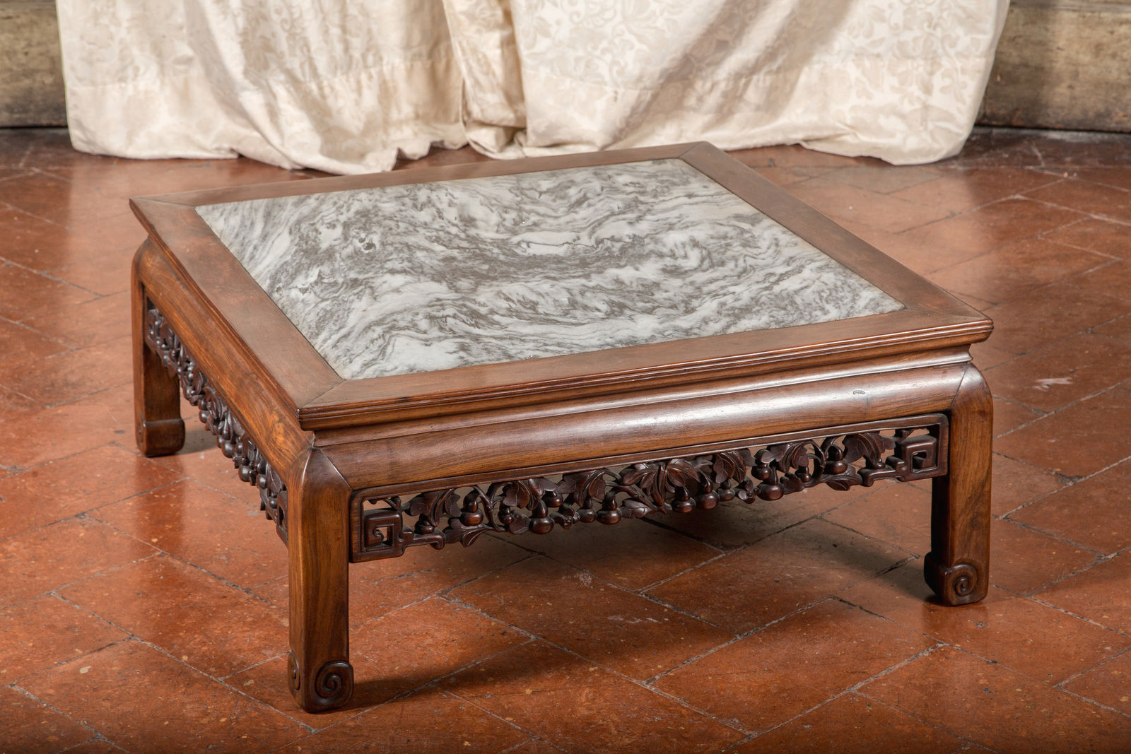 Arte Cinese Basso tavolino probabilmente in legno Huanghuali con piano in marmo