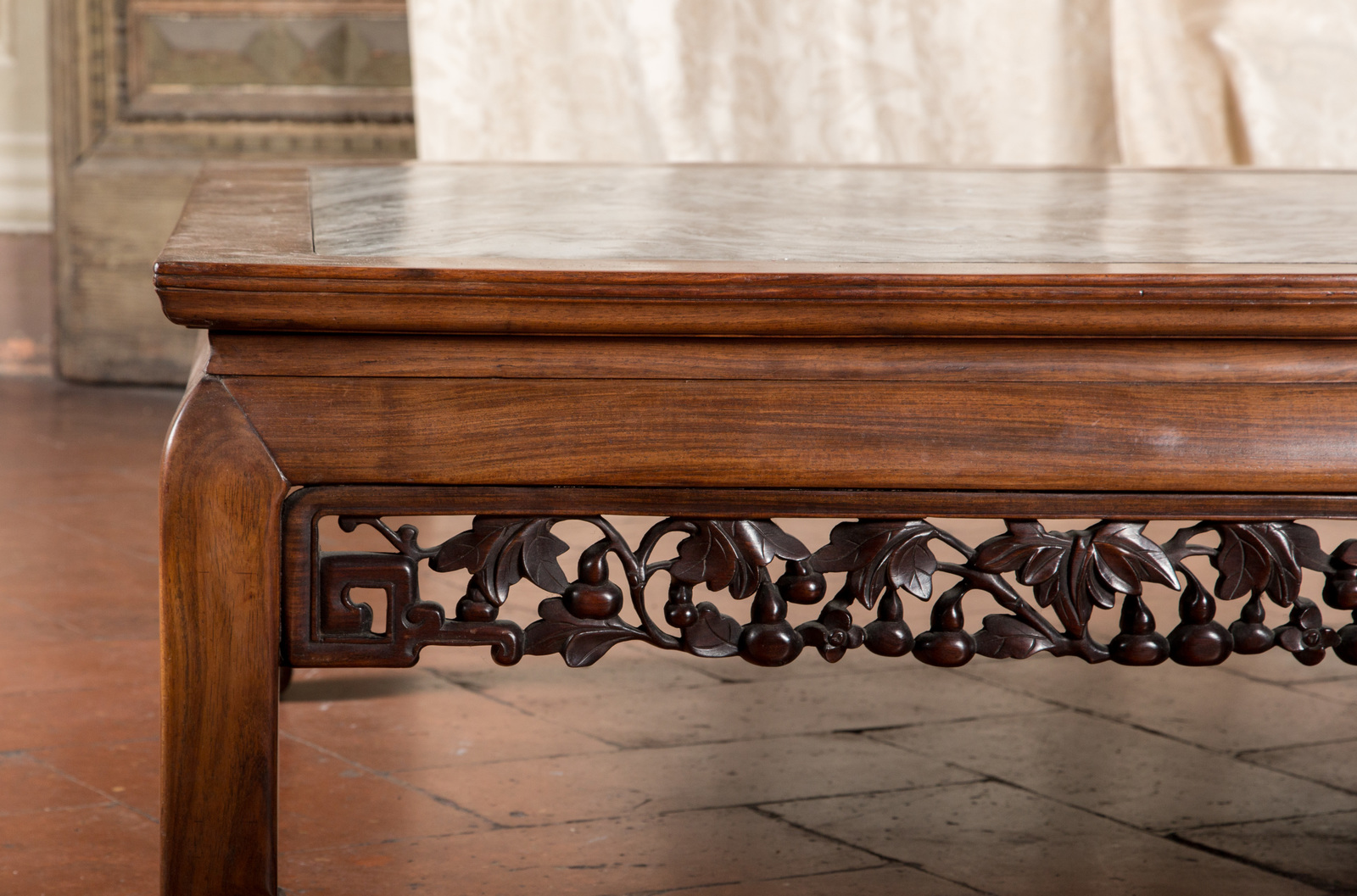 Arte Cinese Low table, possibly of huanghuali wood, with dreamstone marble fitted top