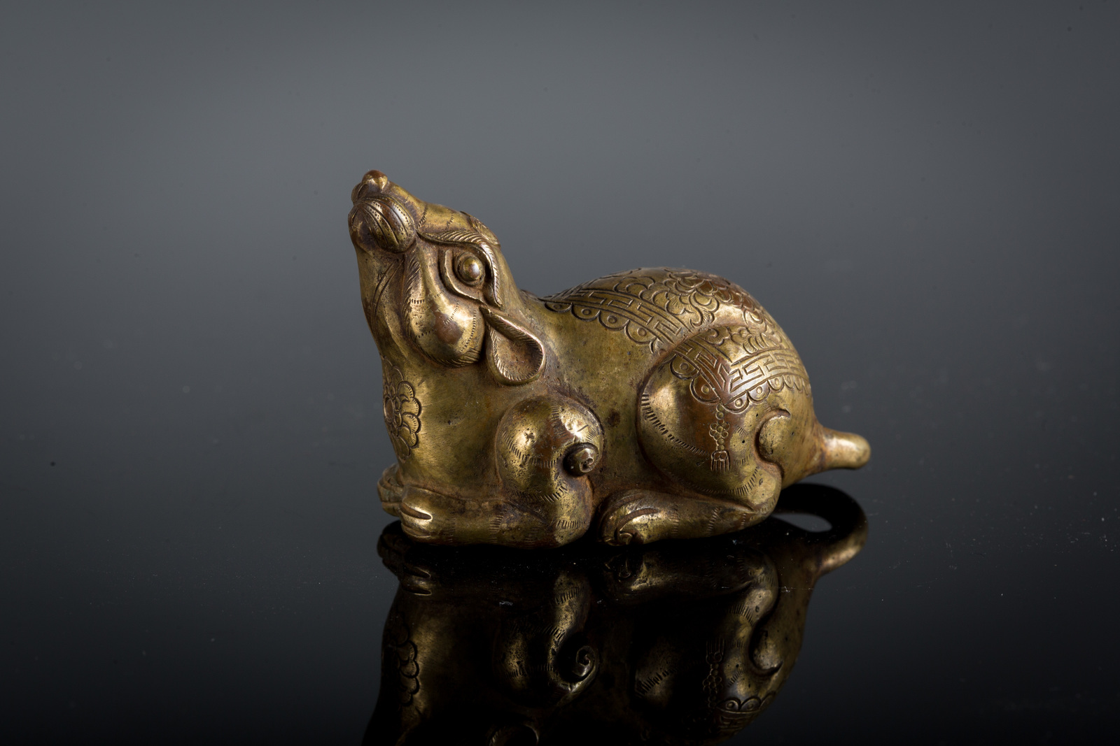 Arte Cinese Scultura in bronzo dorato raffigurante un topo