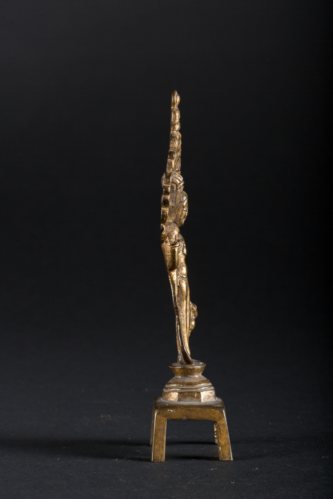 Cina, dinastia Tang . -. Cm 5,00 x 19,00 x 4,00. Raffigurante la divinità stante su base rettangolare iscritta con la data di nascita di Buddha Sakyamuni.