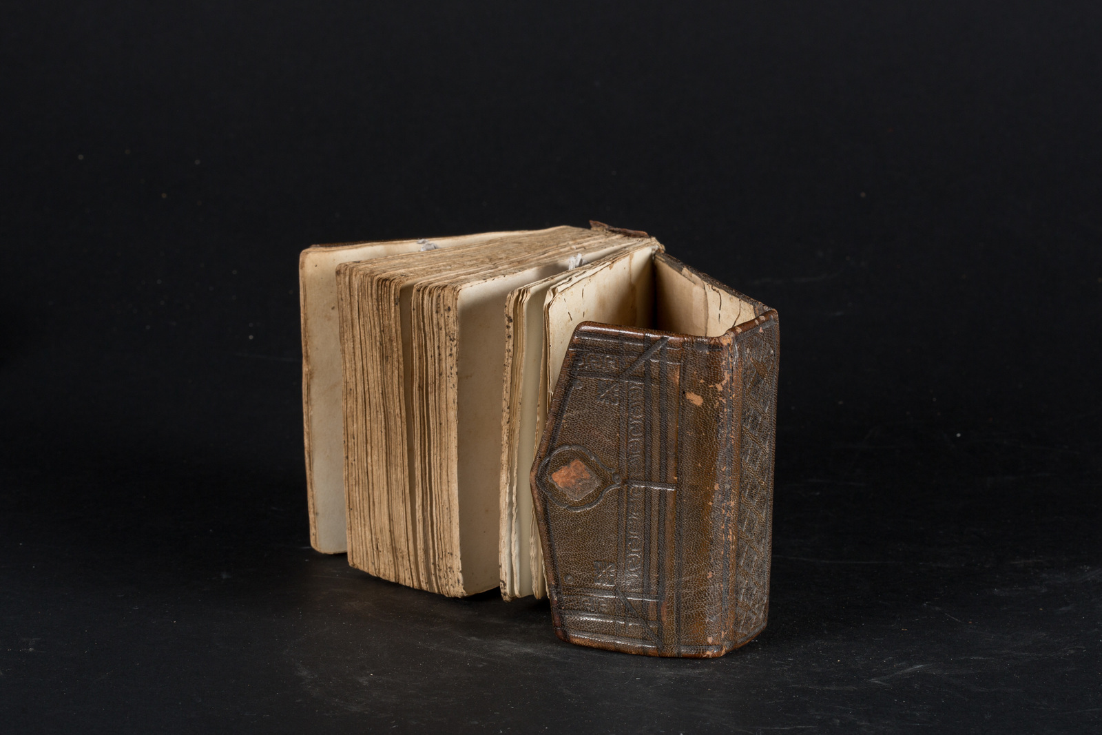 Legatura coeva in pelle decorata a secco con ribalta, completa di astuccio da viaggio in pelle. Eccellenti condizioni di conservazione nella prima parte, nella seconda qualche corrosione della carta.