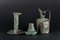 Khorasan, XII secolo . -. Cm 25,00. Lotto composto da: ciotola 4 x 15 cm; ciotola 3 x 15 cm; piattino 11 cm; scodella 5 x 10 cm; vasetto 12 x 9 cm.