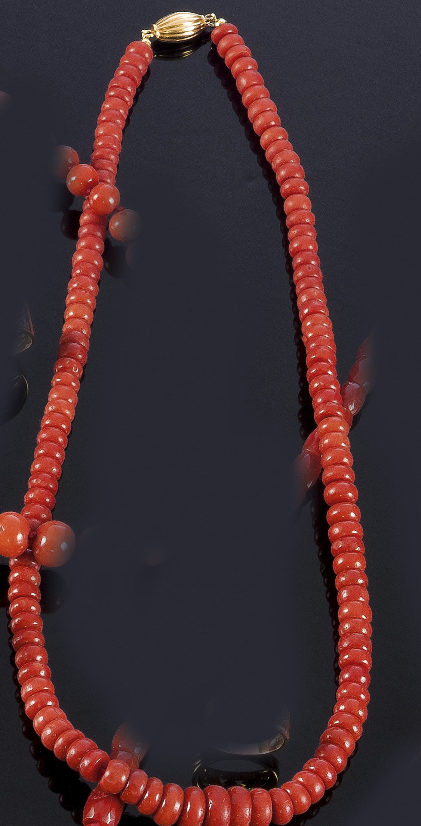 COLLANA DI CORALLO Collana composta da dischi di corallo rosso a scalare...