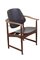 HOVMAND-OLSEN ARNE - Poltroncina in legno di teak. Schienale e sedile rivestiti in pelle nera. Marchiata a fuoco Made in Denmark, design Hovmand-Olsen. 1960 circa.
