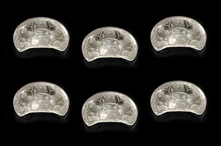 LALIQUE FRANCE Lotto di sei piattini Cm 20x17 Forma di luna quasi piena