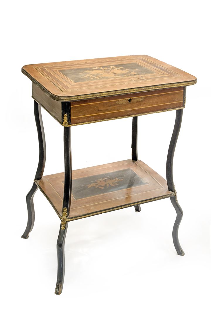 TAVOLINO Tavolino in legno di rosa in parte intarsiato con applicazioni in...