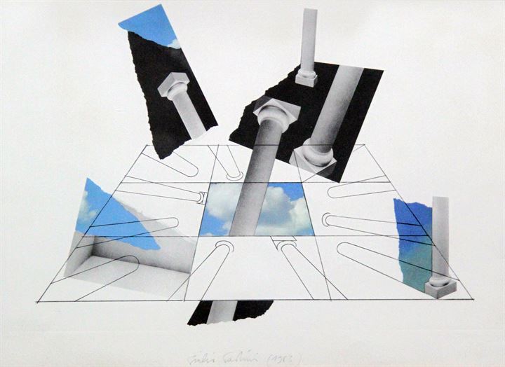 PAOLINI GIULIO Genova 1940 "Hierapolis" 1983 50x70 litografia a colori su...