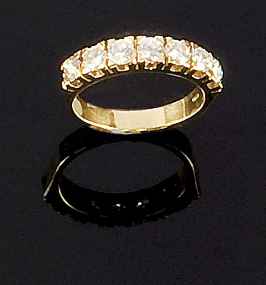 Lotto 695 | ANELLO Fedina in oro giallo con sette diamanti taglio brillante rotondo per...