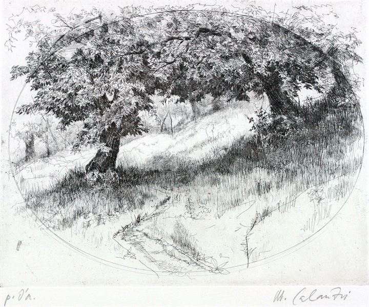 CALANDRI MARIO Torino 1914 - 1993 "Nel bosco"1980 35,4x27,5 acquaforte p.a....