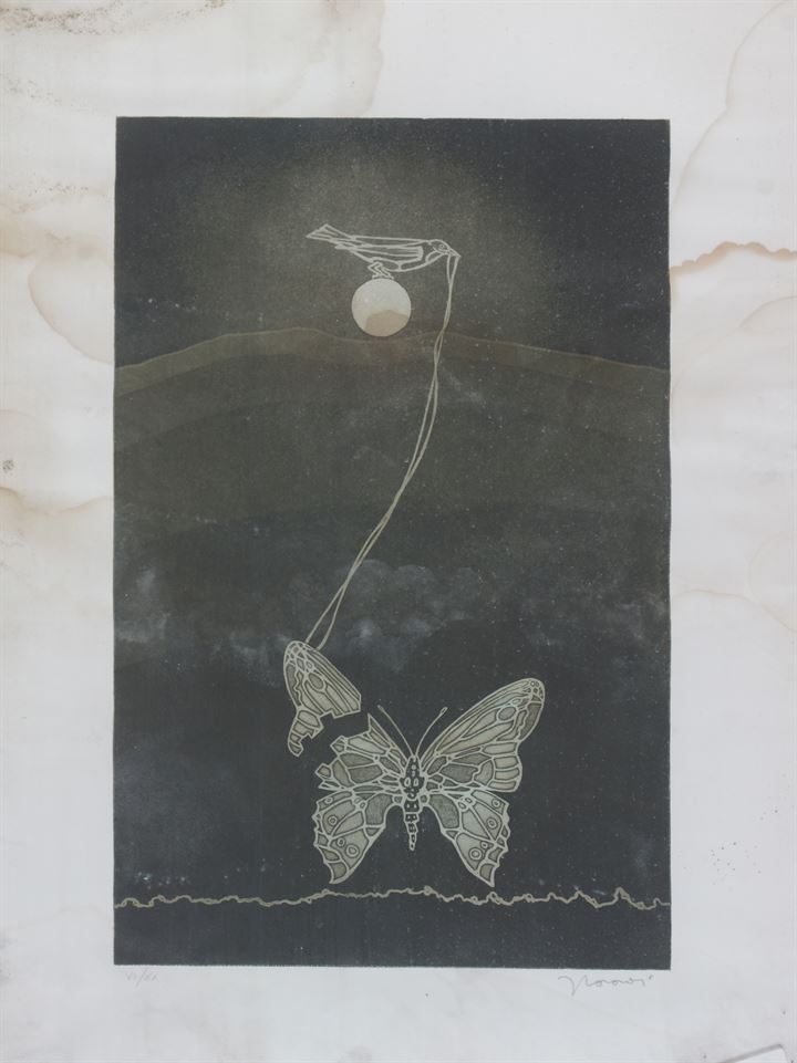 CASORATI FRANCESCO Torino 1934 - 2013 "Farfalla e uccello" 48x31,5 multiplo,...