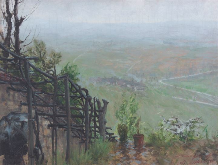 MORBELLI ANGELO Alessandria 1853 - 1919 Milano "Giardino sotto la pioggia"...