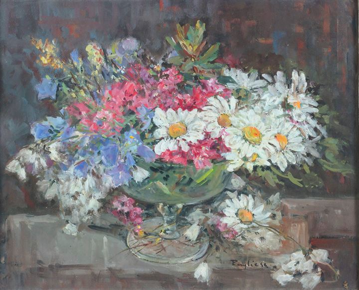 PUGLIESE SANDRA Alessandria 1877 - ? "Fiori alpestri" 31x38 olio su carta...