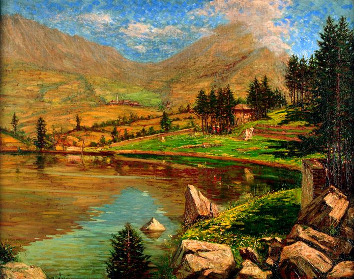 OLIVETTI ERCOLE Torino 1874 - 1941 "Fenestrelle" 65x85 olio su tela Opera...