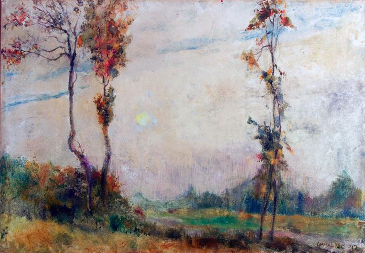 GARIAZZO PIER ANTONIO Torino 1879-1964 "Alberi solitari" 48,5x69,5 olio su...