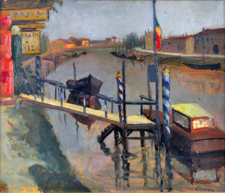 VELLAN FELICE Torino 1889 - 1976 "A Mestre (Venezia)" 1930 38x45 olio su...