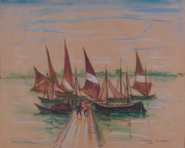 VELLAN FELICE Torino 1889 - 1976 "Caorle - Venezia" 1952 40x50 tecnica mista...