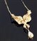 COLLANA Collana in oro bianco e giallo, punzone "del Fascio", perline intercalate; con pendente in oro giallo a forma di due cicogne reggenti una grande perla autraliana a goccia, a simboleggiare la nascita di un bambino Diamanti taglio brillante rotondo sulla chiusura e sul pendente per complessivi ct 4,00 ca e due piccoli rubini come occhi Peso gr 32,8