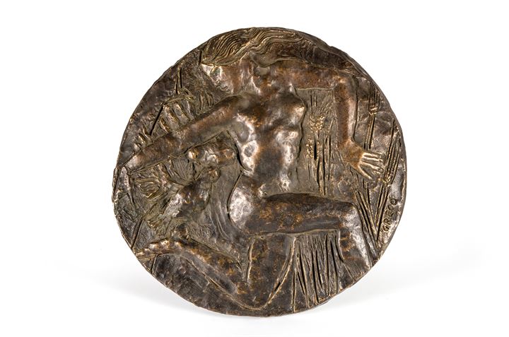 GRECO EMILIO Catania 1913 - 1995 "Nudo femminile con uccelli" Diam. cm 40...