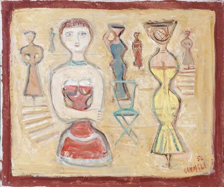 CAMPIGLI MASSIMO Firenze 1895 - 1971 F "Figure" 1956 45x55 olio su tela Opera...