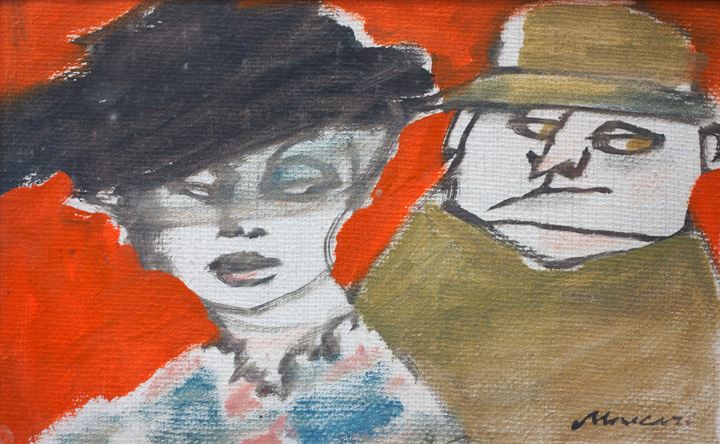 MACCARI MINO Siena 1898 - 1989 Roma "Figure" 1958 25x40 olio su tela Opera...