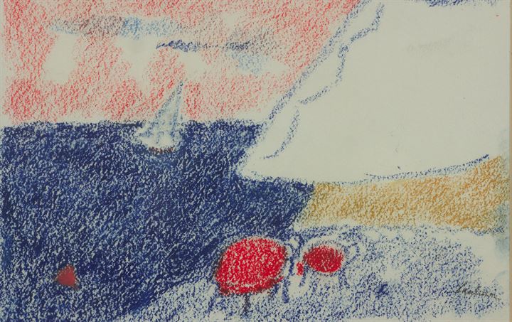 PAULUCCI ENRICO Genova 1901 - 1999 Torino "Spiaggia, tavolini rossi" 1980...
