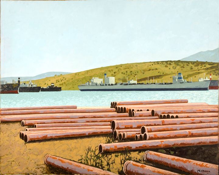 Lotto 724 | CHESSA MAURO Torino 1933 "Igoumenitza" 1982 80x100 olio su tela Opera firmata...