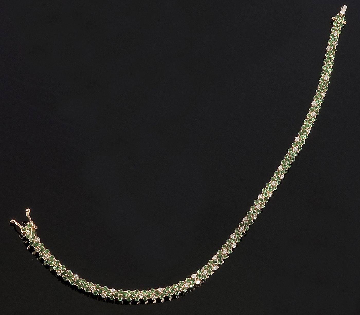 BRACCIALE Bracciale in oro giallo con zavoriti taglio rotondo per complessivi ct 3, 00 ca e diamanti taglio brillante rotondo per complessivi ct 0.60 ca Peso gr 11.50