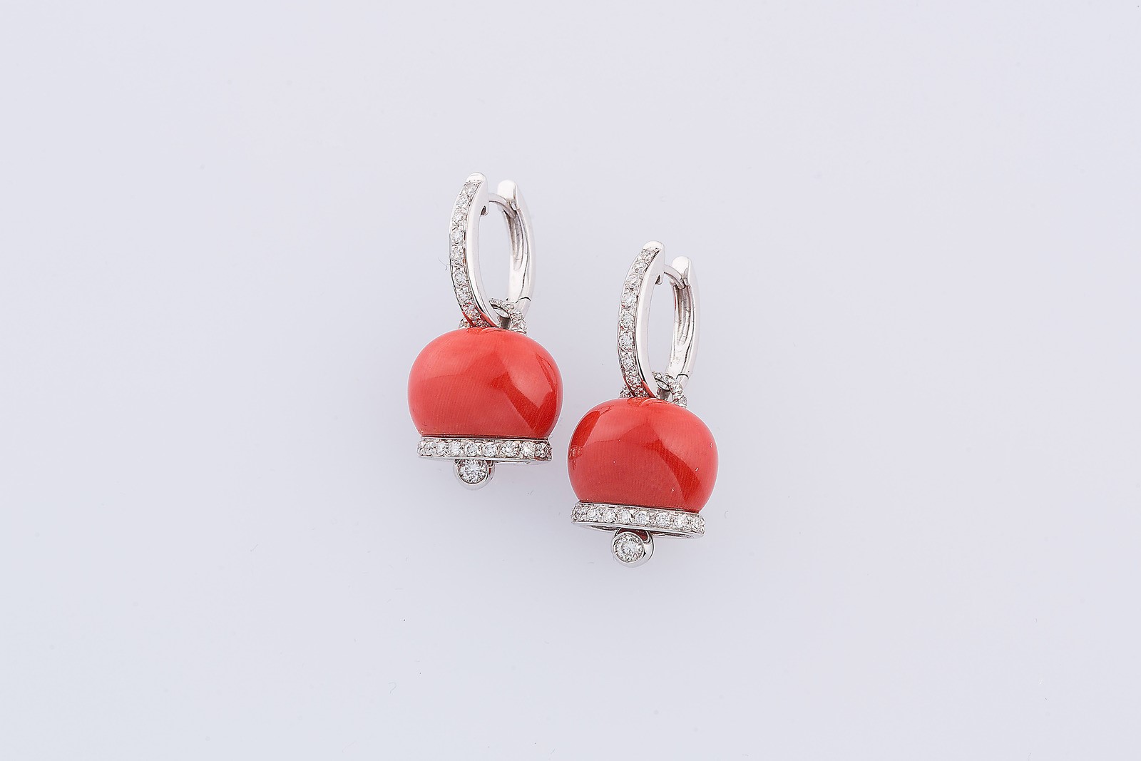 CHANTECLER Paio di orecchini in oro bianco, corallo e brillanti per cts 0.50...