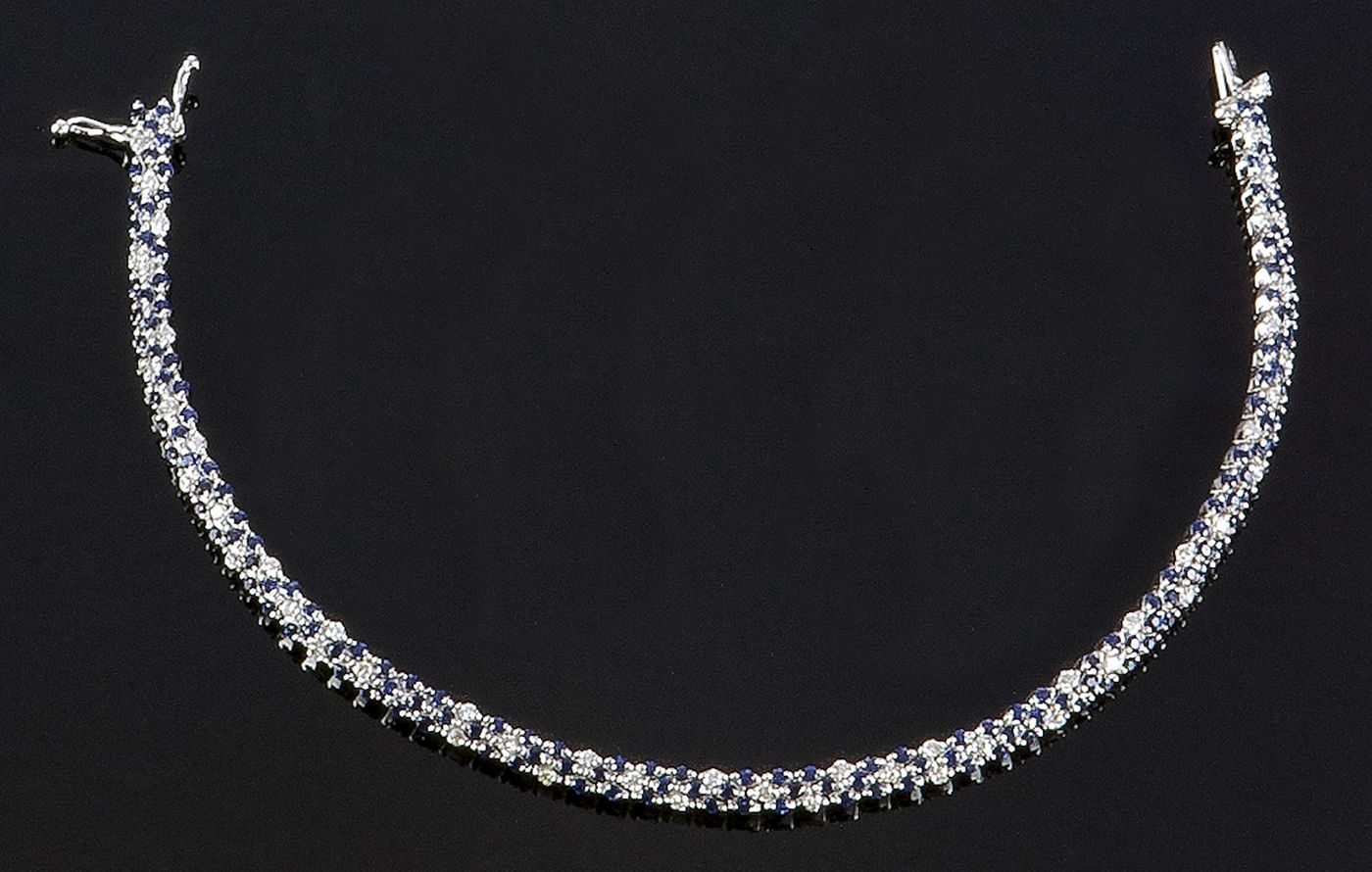 BRACCIALE Bracciale in oro bianco con zaffiri taglio rotondo per complessivi ct 3,03 ca e diamanti taglio brillante rotondo per compelssivi ct 0,66 ca, colore G-I-F, purezza IFVVS Peso 11,5