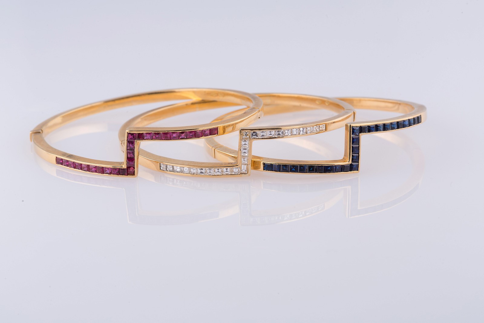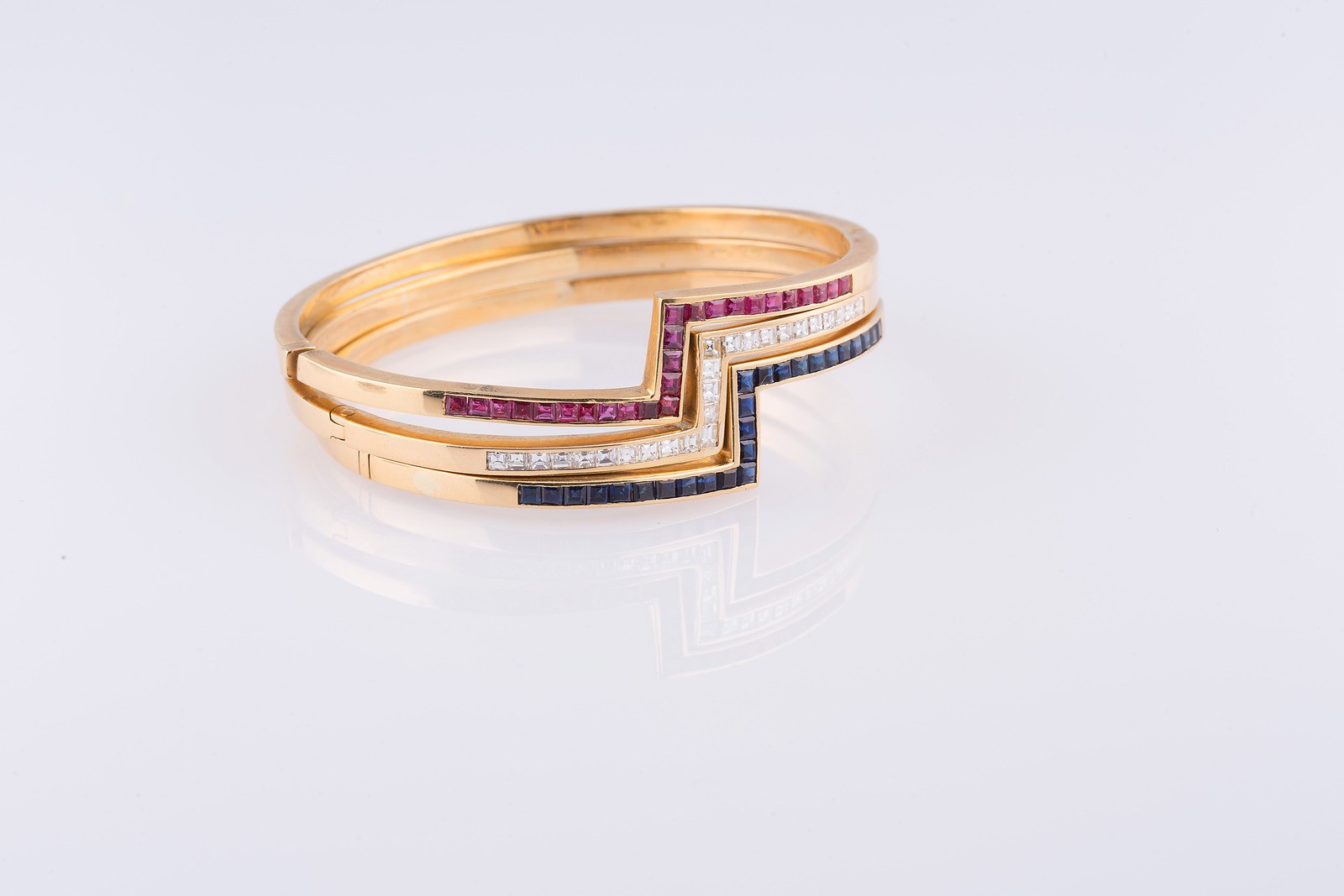 Lotto 114 | Tre bracciali anni settanta oro 18k per un totale gr 84, 26 diamanti 1,85 k...