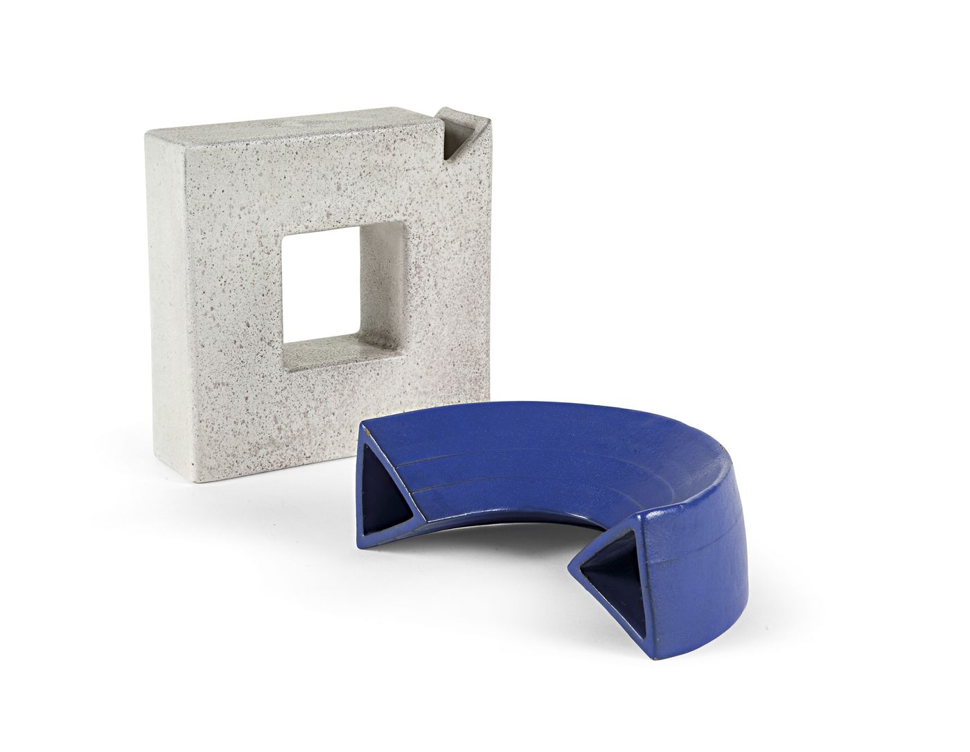 Lotto 815 | TASCA ALESSIO Vaso quadrato beige e cornovaso blu. Prod. Alessio Tasca, 1970...