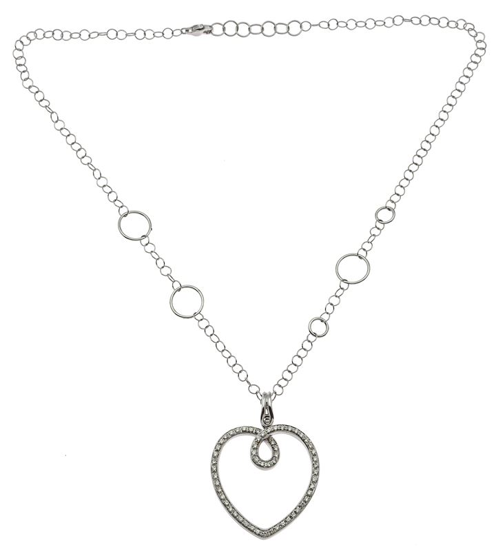 CATENA CON CIONDOLO Peso gr 13,0 in oro bianco a forma di cuore con diamanti...
